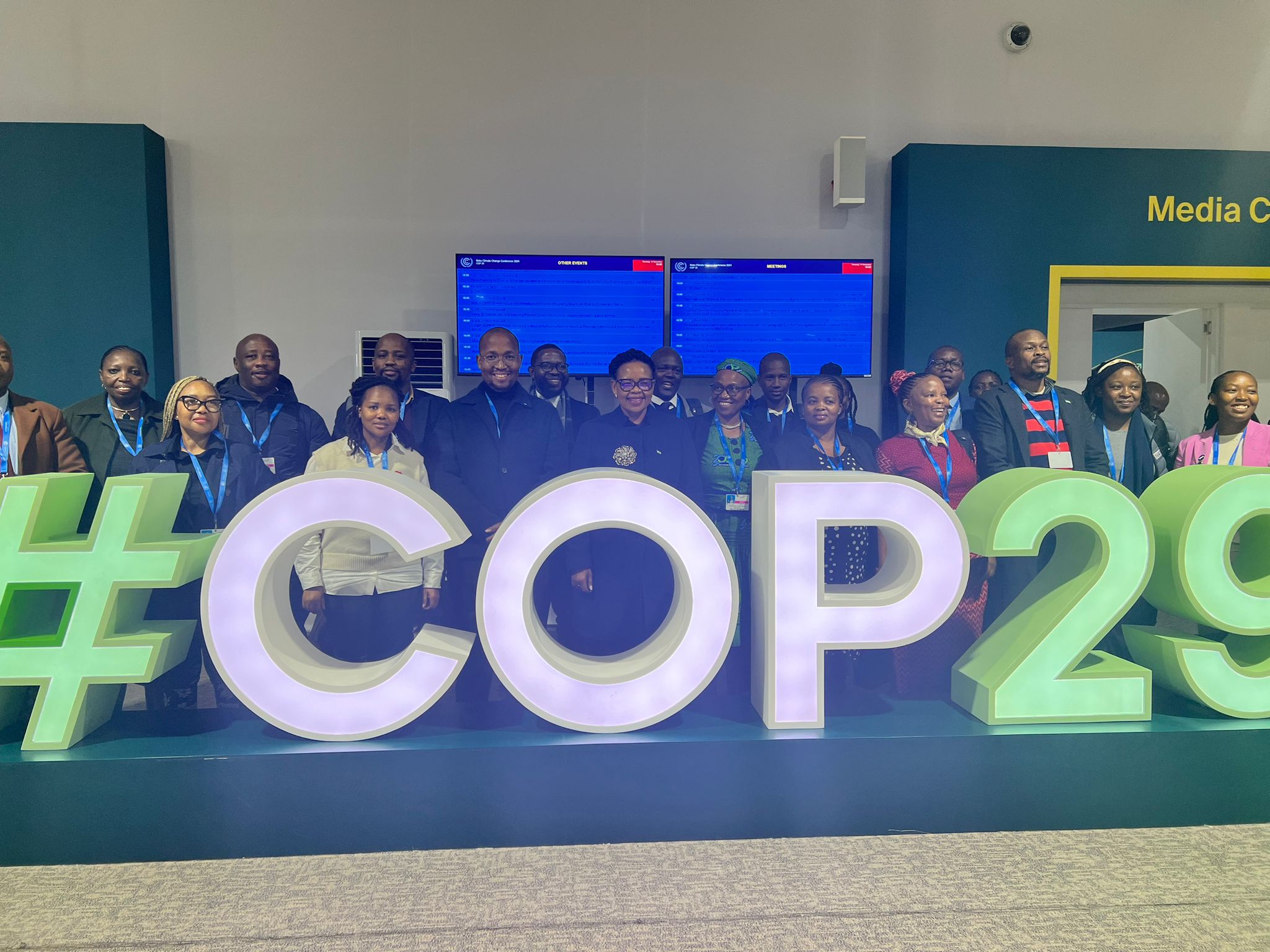 The Lesotho delegation, led by His Excellency Nthomeng Majara, Deputy Prime Minister of Lesotho, actively participated in the 29th United Nations Climate Change Conference (COP29) in Baku, Azerbaijan. The delegation included a distinguished technical team head-ed by the Honorable Mrs. Maphakamile Xingwana, Principal Secretary.